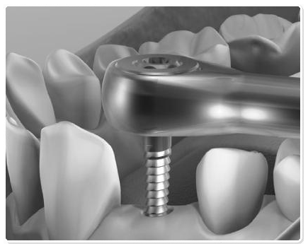 The head of this screw has got a certain height as to stick out above the gum line with about one millimeter. The purpose of this step is let the gum heal in a circle and to shape the gum for the following step.